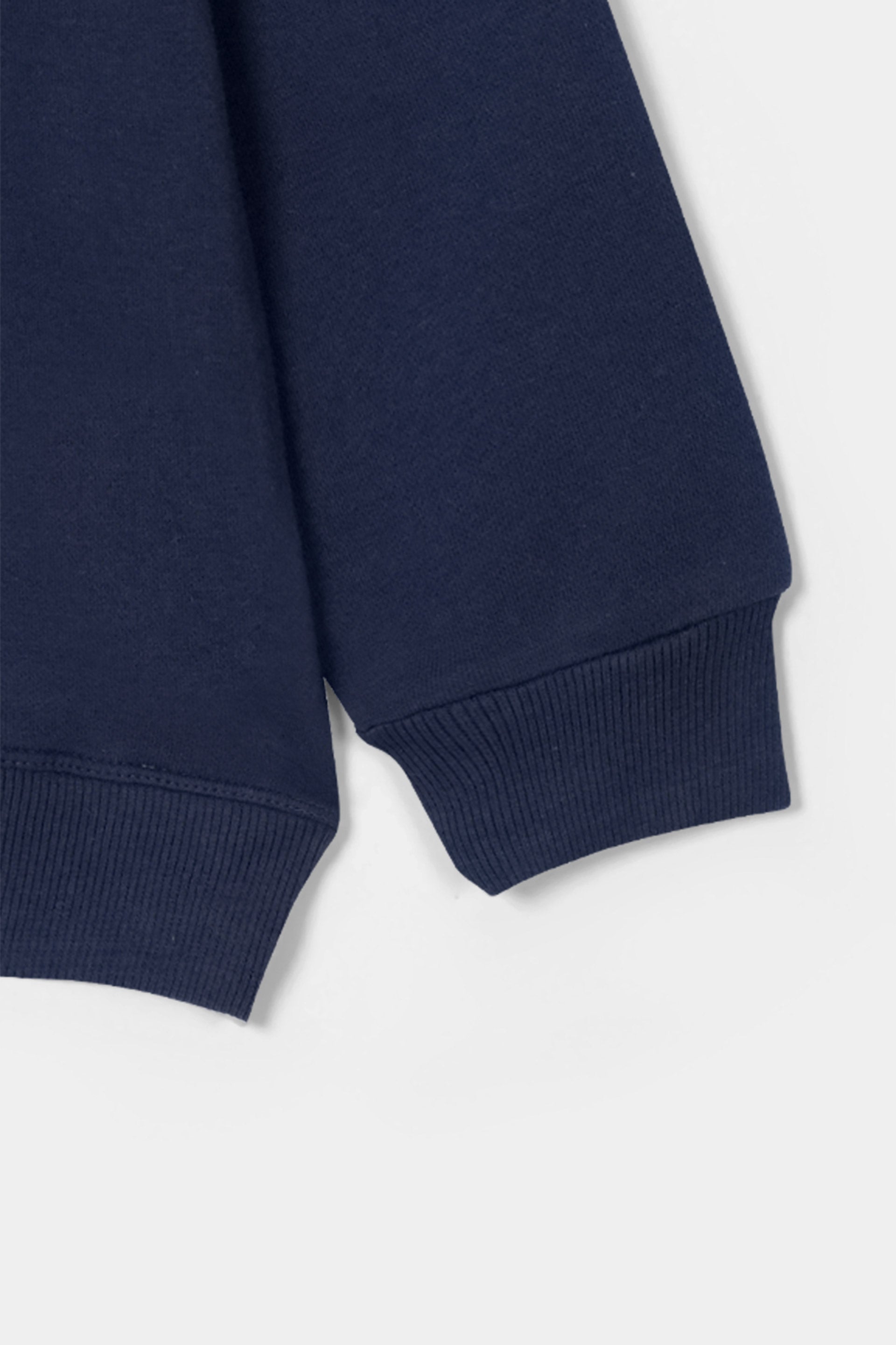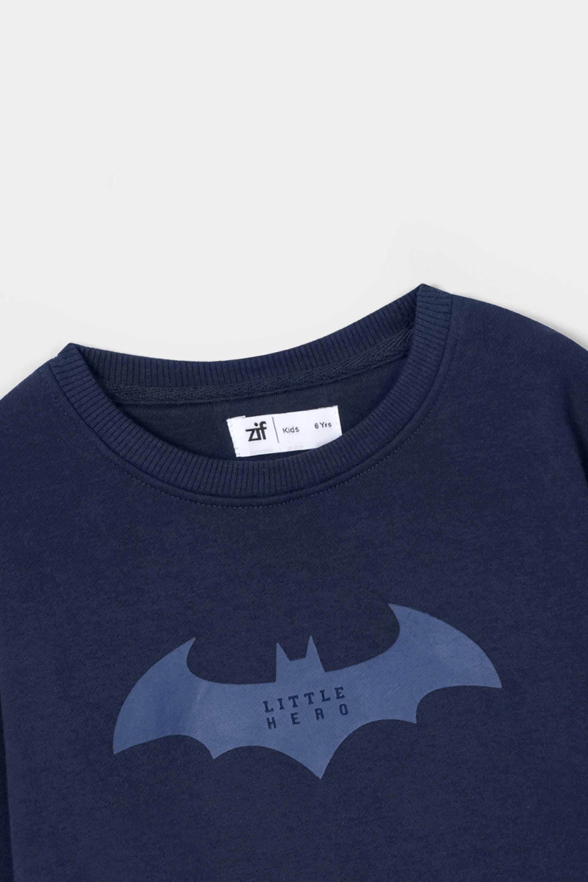 Let your little one feel like the hero of Gotham with this sleek, comfortable Batman crewneck sweatshirt. Featuring the iconic Bat-Signal in a tonal blue on a deep navy background.