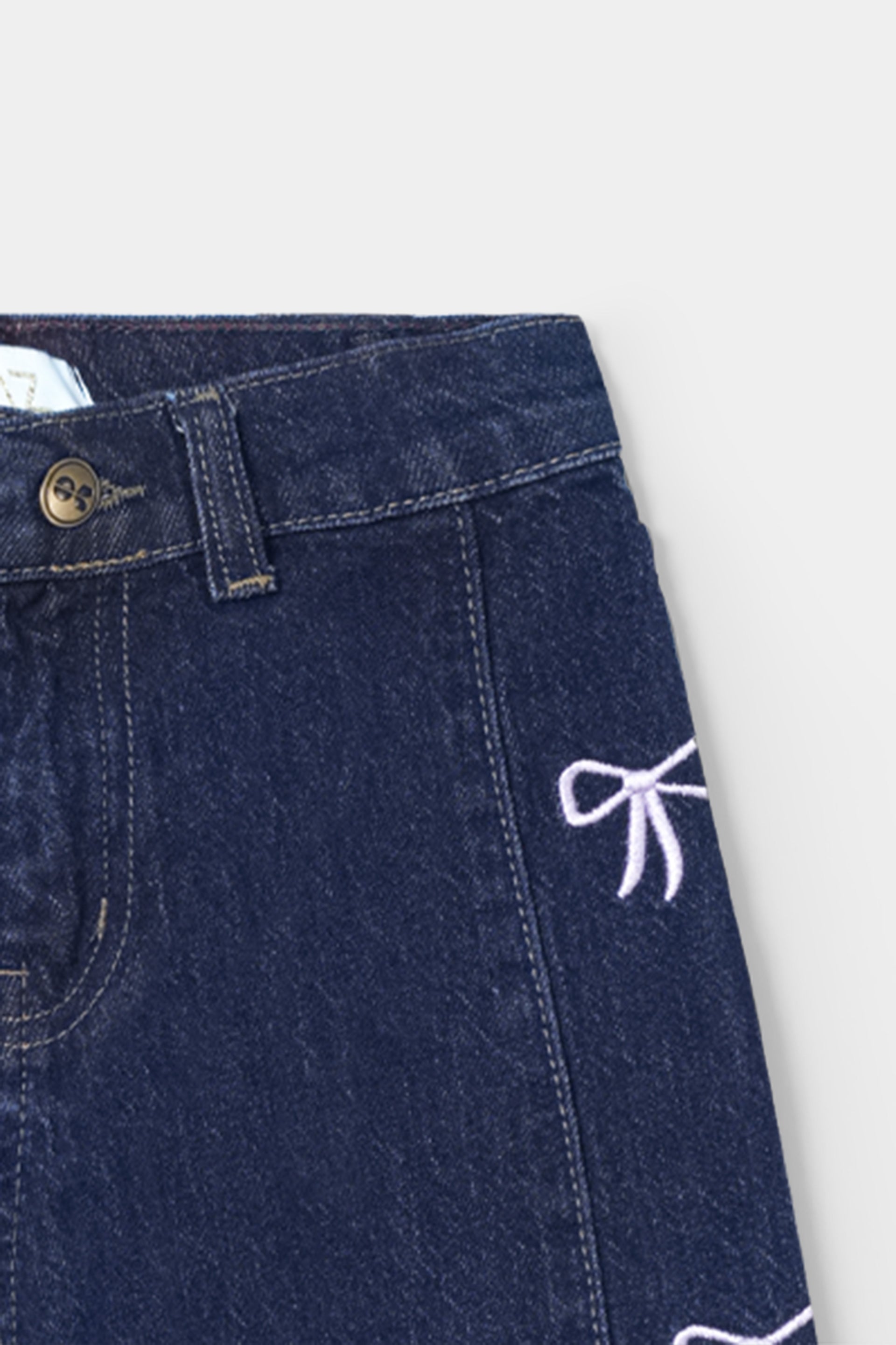 Wide-Leg Bow Embroidered Jeans These wide-leg jeans take a classic style and elevate it with sweet, playful...