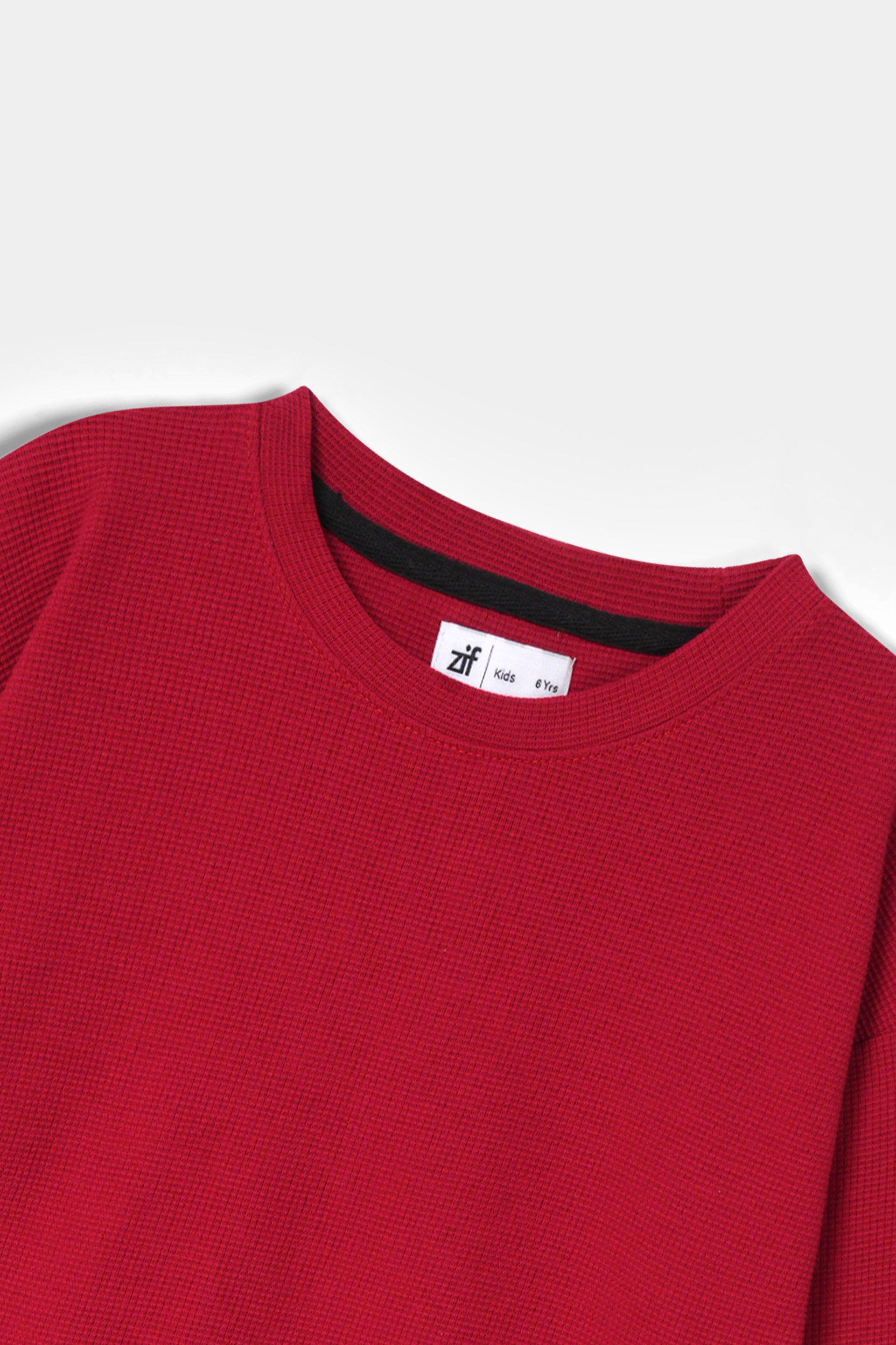 Ultra-soft and cozy Red sweatshirt in a rich ottoman knit texture. Perfect for everyday comfort and style.