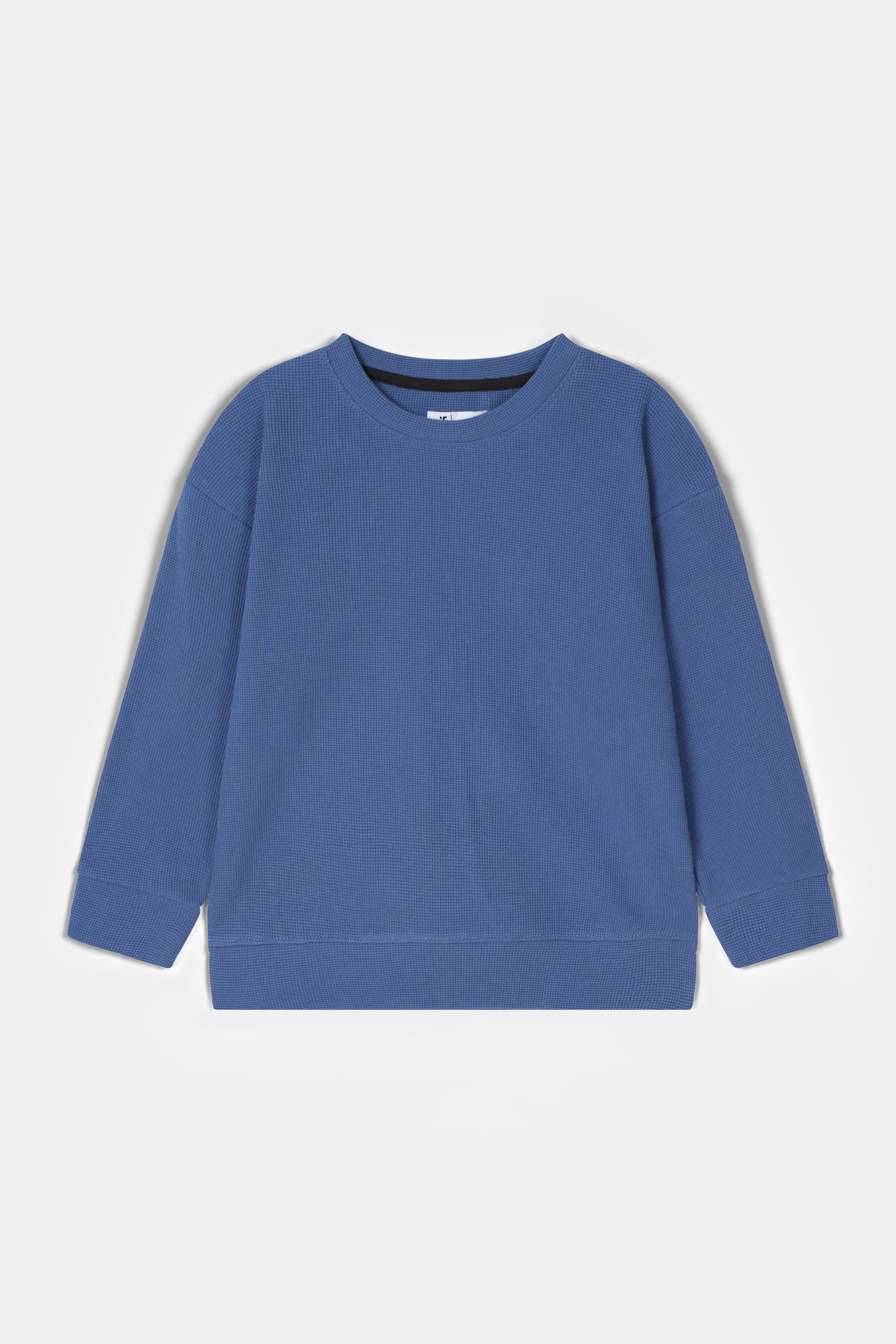 Ultra-soft and cozy blue sweatshirt in a rich ottoman knit texture. Perfect for everyday comfort and style.
