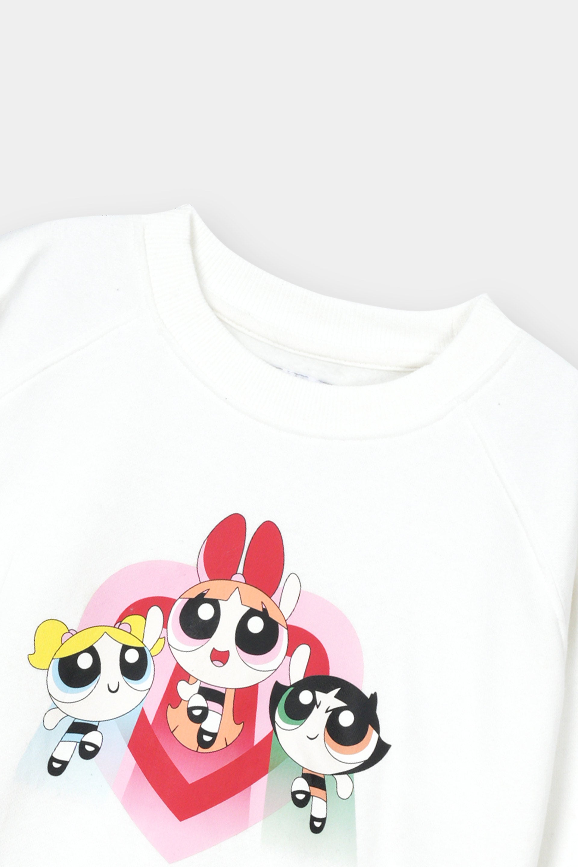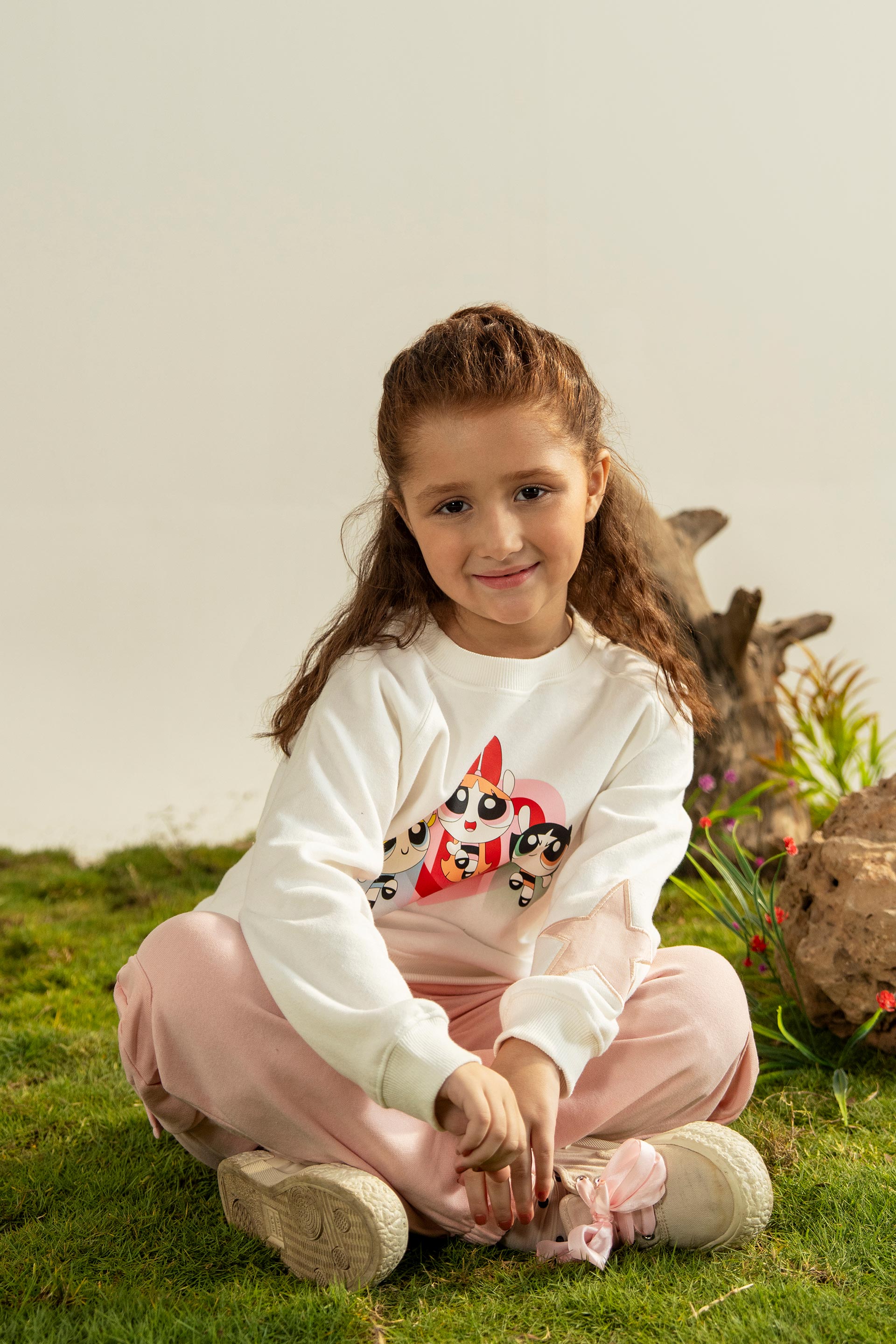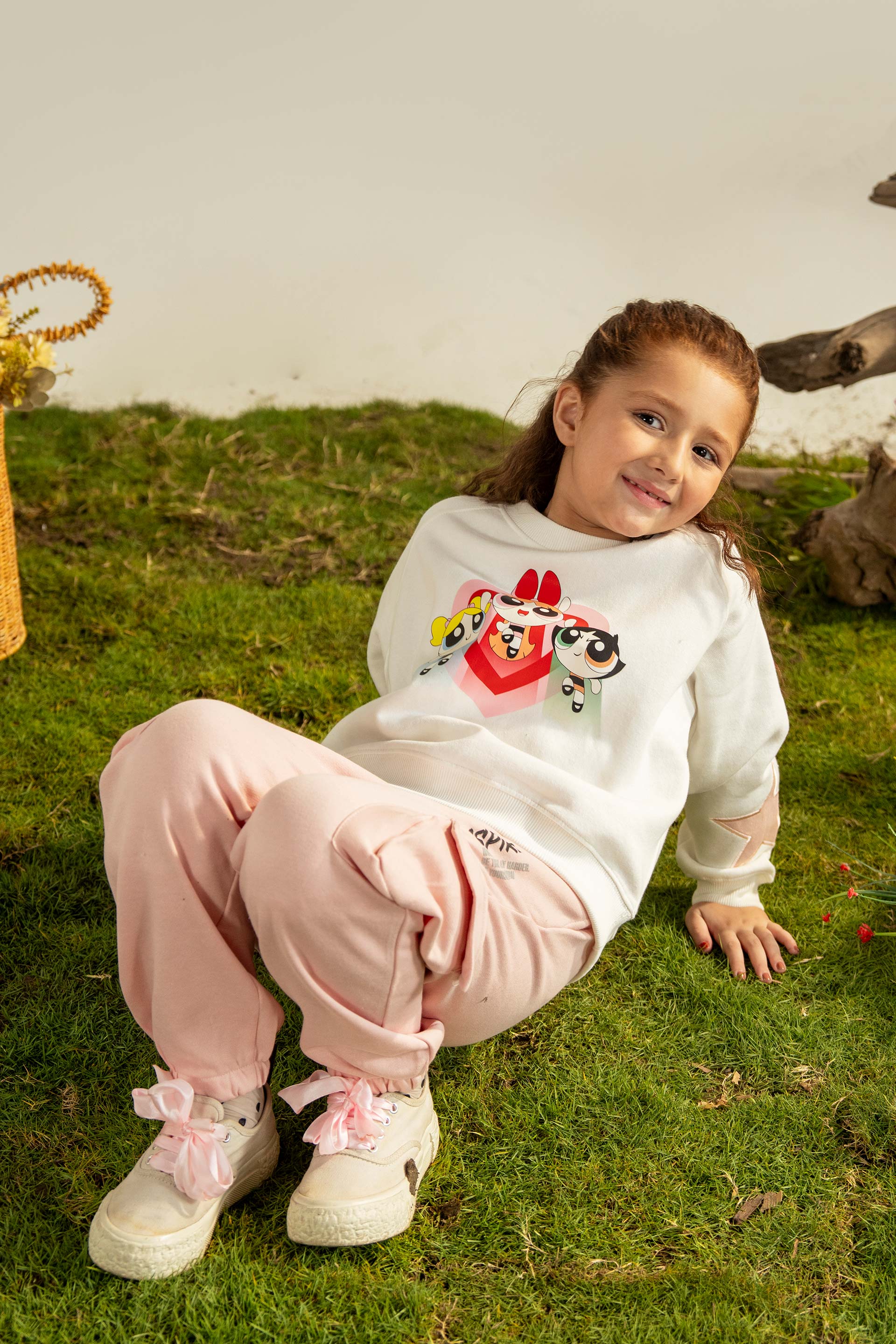 Team up with Blossom, Bubbles, and Buttercup in this adorable Power puff Girls set. It features a soft white sweatshirt and trendy pink cargo joggers for a look that's sugar, spice, and everything nice.