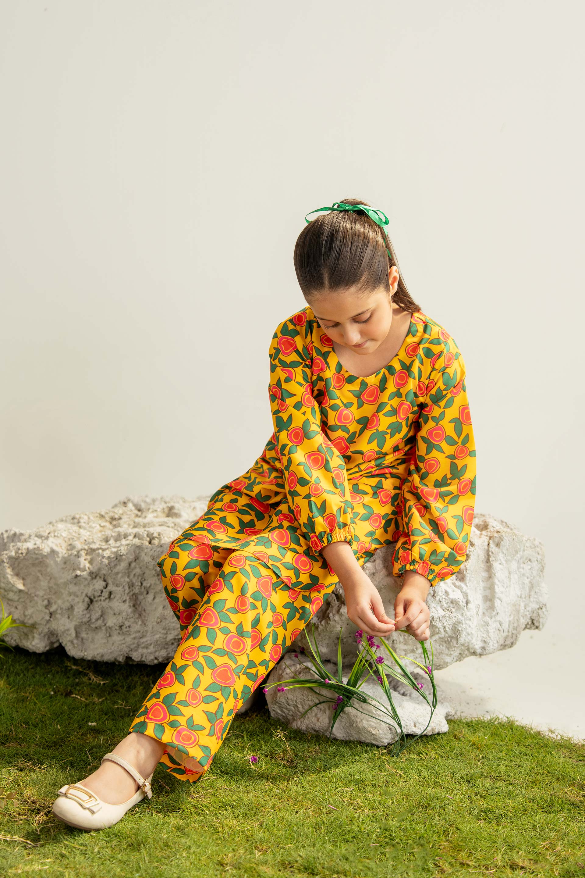 Inspired by bright, folk-art florals and crafted from soft, breathable premium Raw Silk, this vibrant tunic and trouser set provides comfortable, unrestricted movement for imaginative young girls who love to express their cheerful personality through bold color and traditional patterns.
