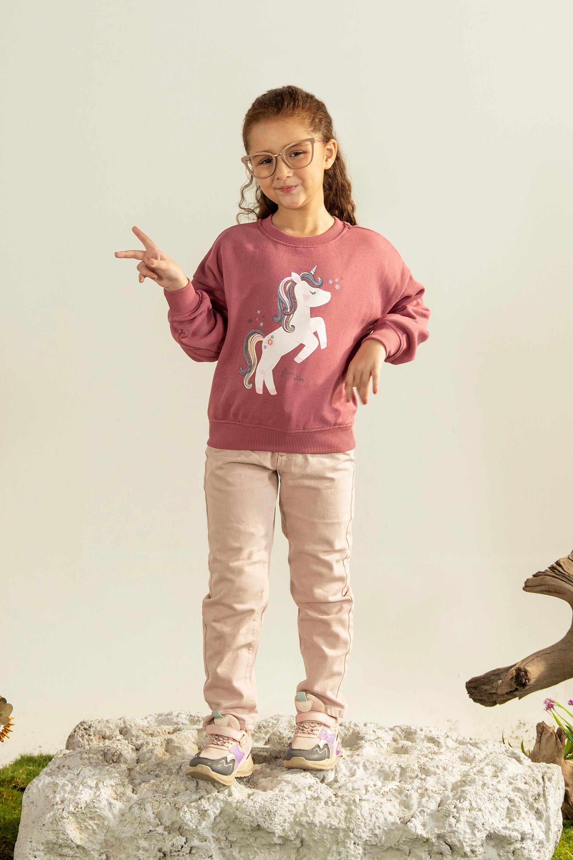 This cozy, oversized sweatshirt is the perfect blend of comfort and fantasy. Featuring a vibrant, prancing unicorn graphic with a rainbow