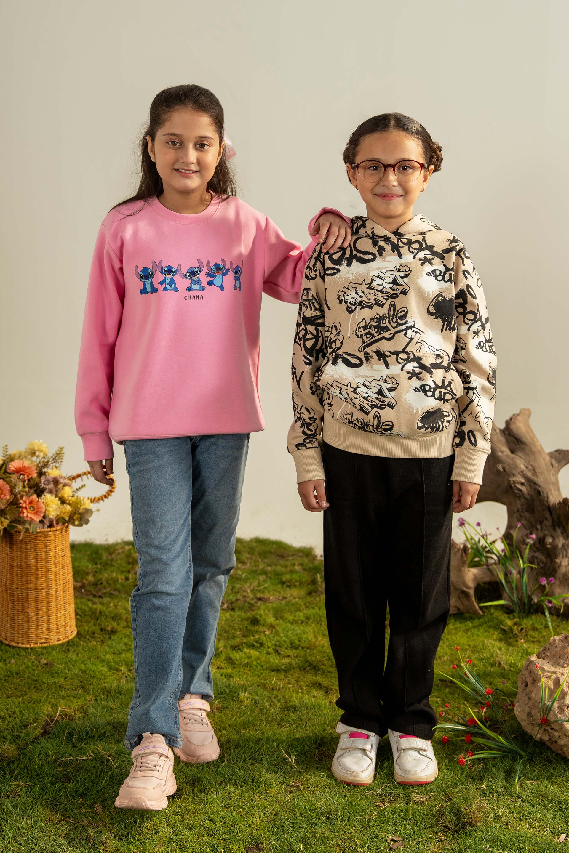 Inspired by the cherished message of 'Ohana means family,' this premium, soft interlock sweatshirt features a playful print of beloved characters, delivering cozy warmth and cheerful, comfortable style for young fans who carry friendship and fun everywhere they go.